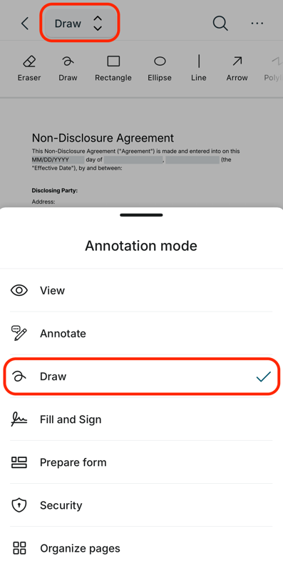 3. From the Annotation Modes, select Draw.