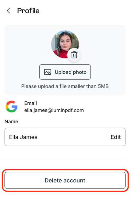 Deleting your Lumin account can be done easily in the app under your profile settings.
