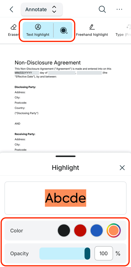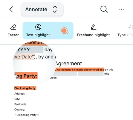Make those important bits of text stand out on your PDF using Lumin's highlight tool for mobile.
