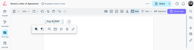 Insert a calendar date into your document with ease, using the date stamp tool.