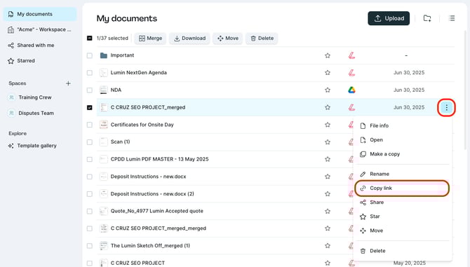 - Locate the file in the Document List, then tap the three dots to the right of the file you want to share.