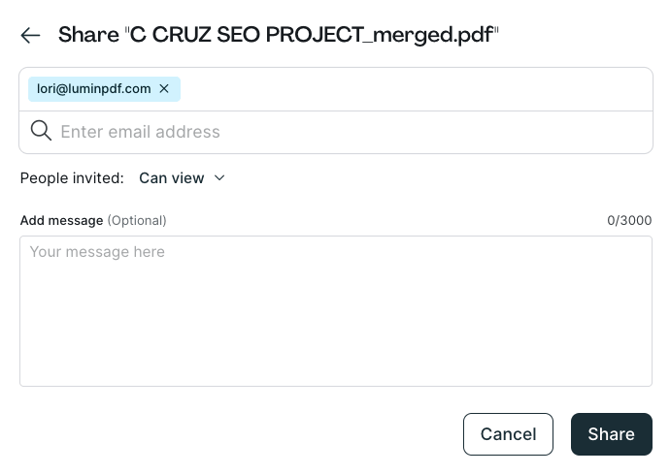 - Enter the email address of the person you'd like to share the document with. You may also enter multiple email addresses in this section.