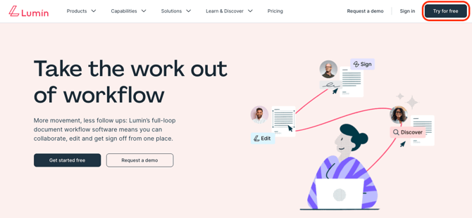 - Visit www.luminpdf.com and click Try for free.