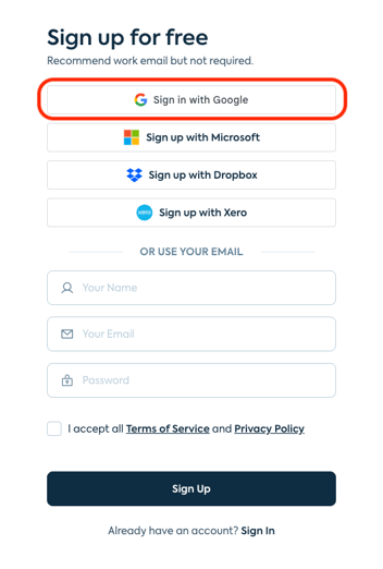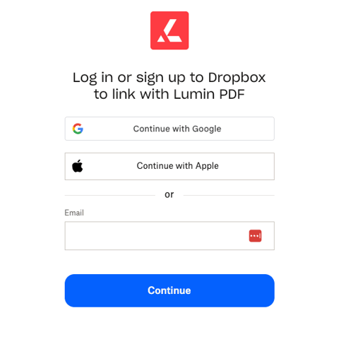 TIP: Creating a Lumin account via Google Drive and Dropbox is the best way to keep your account secure and safe as both platforms can be linked to a multi-factor authenticator.