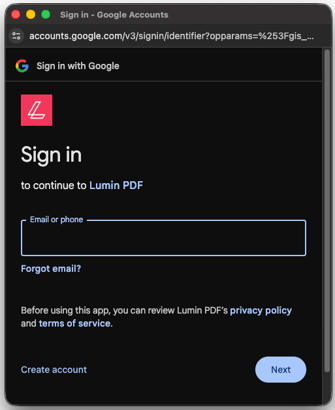 Create a Lumin account via Google